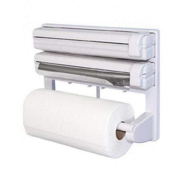 It holds plastic wrap films, paper tissue rolls and tin foils and makes them available instantly without the need to find it around the house.