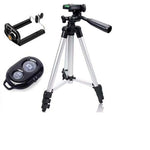 Portable & Foldable Camera Mobile Tripod With Bluetooth Wireless Remote Shutter - Silver Quick release leg lockNon-slip rubber feetGrip for adjusting head positionLightweight and portable Tripod + 3-Way HeadBuilt-in bubble...