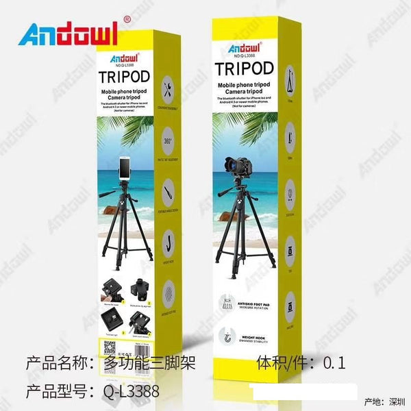 Specification:Model: Q-L3388Convenient DisassemblyPan Tilt: 360 Degrees AdjustmentPortable Handle DesignMaterial: Abs High Quality Aluminum And Plastic CombinedWeight: About 0.6 KgMaximum Load: 2.0 KgMaximum Leg Diameter: About 520mmTripod Storage Height: 1370mmWeight Hook: Enhanced...