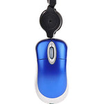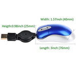 Features: Optical mouse. USB interface. 3-buttons. Scroll wheel (acts as third button). Quiet Scroll Wheel. Blue Light Technology. Specifications: High Resolution: 800DPI Retractable USB Cord length: approx. 70cm/2.29ft Rating: 5V-100mA...