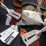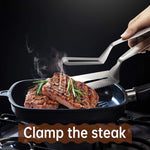 Multi-function: our tongs steak clamp is good at lifting, turning and transferring whole steak, beefsteak, burgers, eggs, salad, barbecue, dessert and more. Which is good for flipping & frying items...
