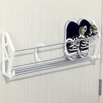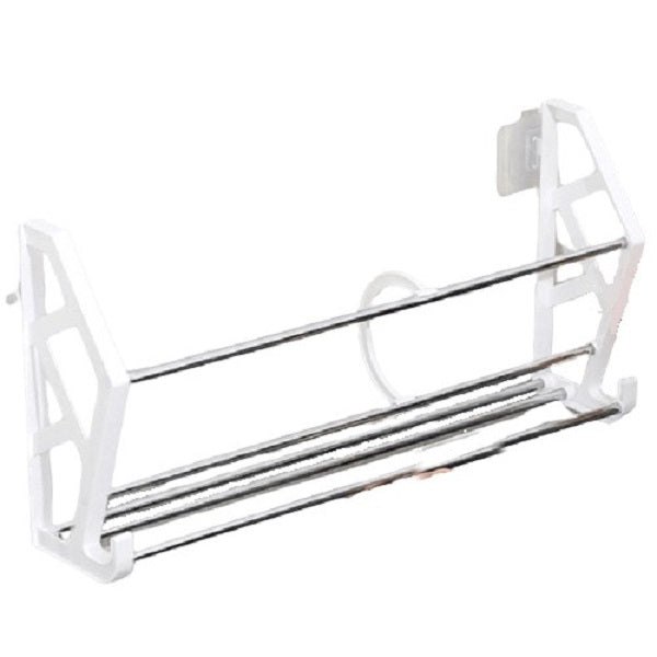 Features: Space saver wall-mounted organizer. Shoe and slippers organizer.  Modern and decorative shelf. High quality and durable. Specifications:  Colour: White  Material: Metal, Plastic Number of Shoes: 4
